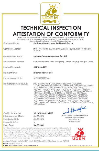 Chiny Johnson Tools Manufactory Co.,Ltd Certyfikaty